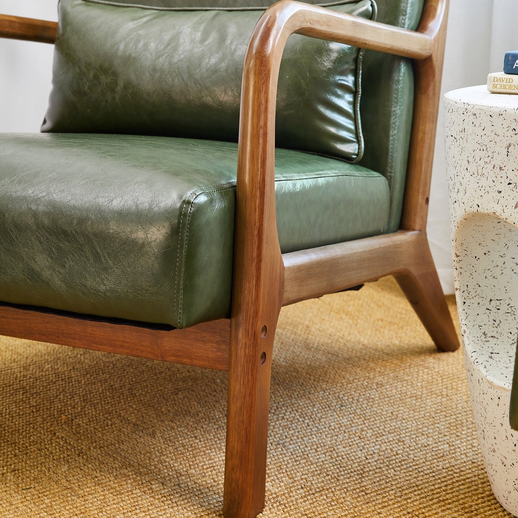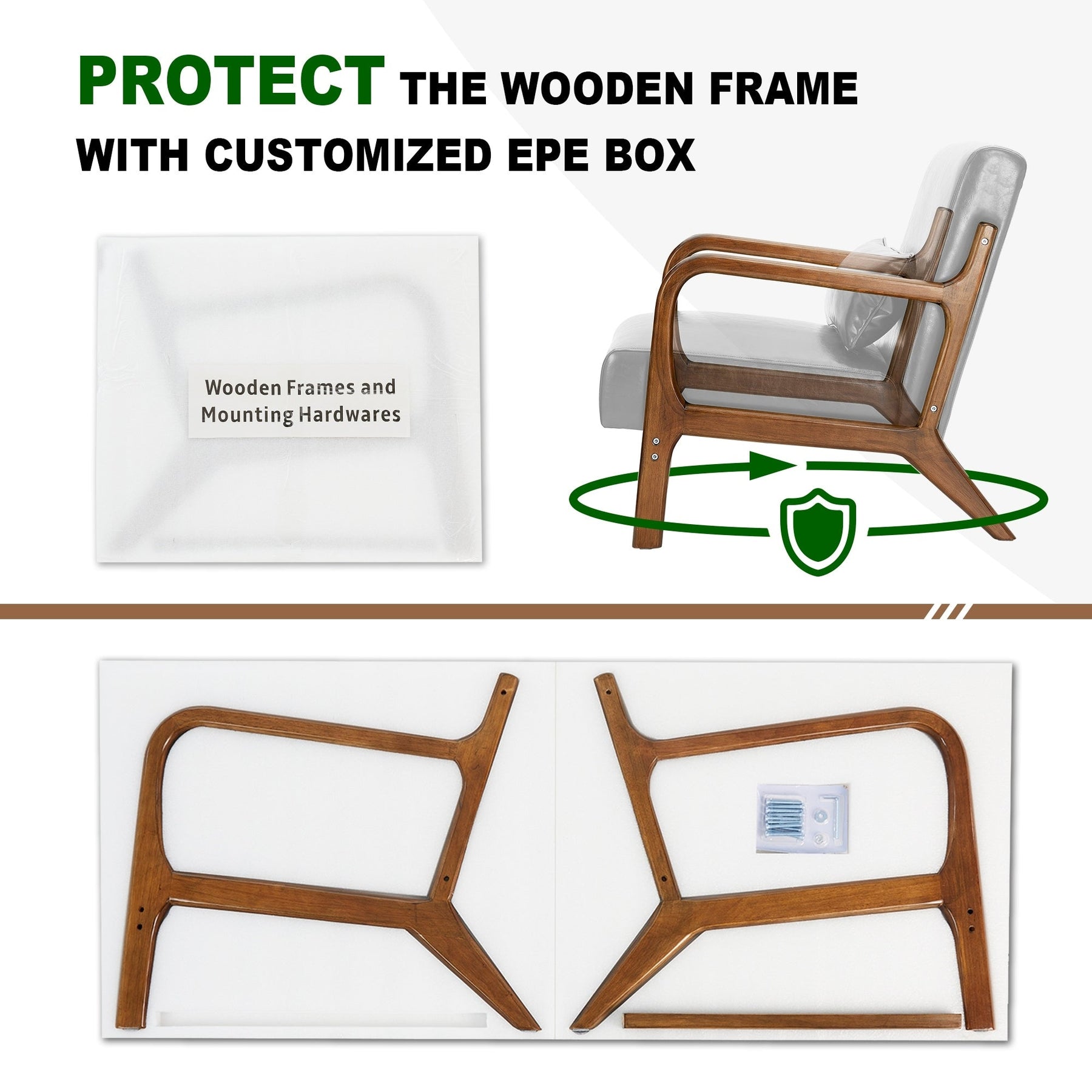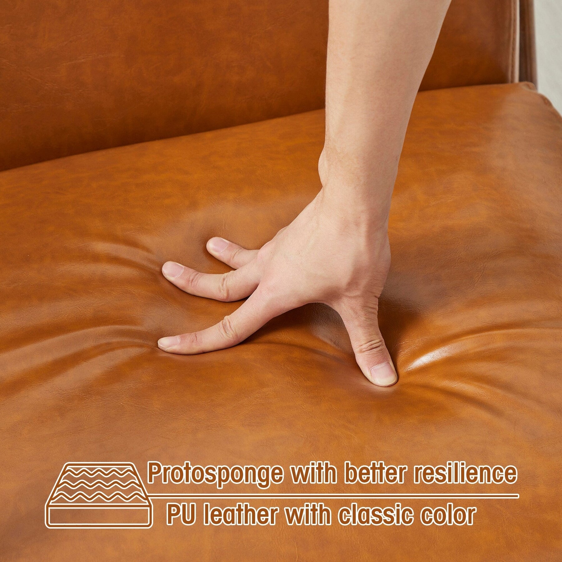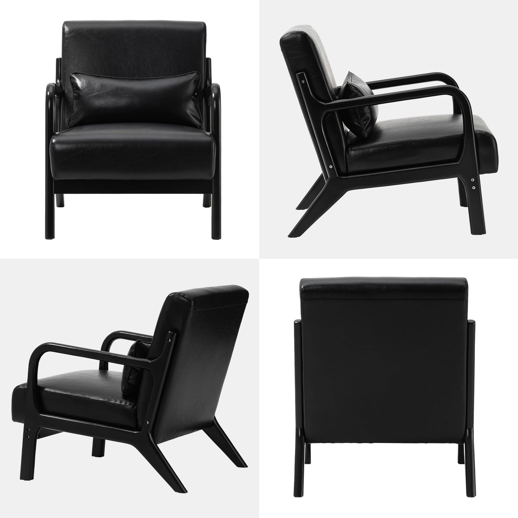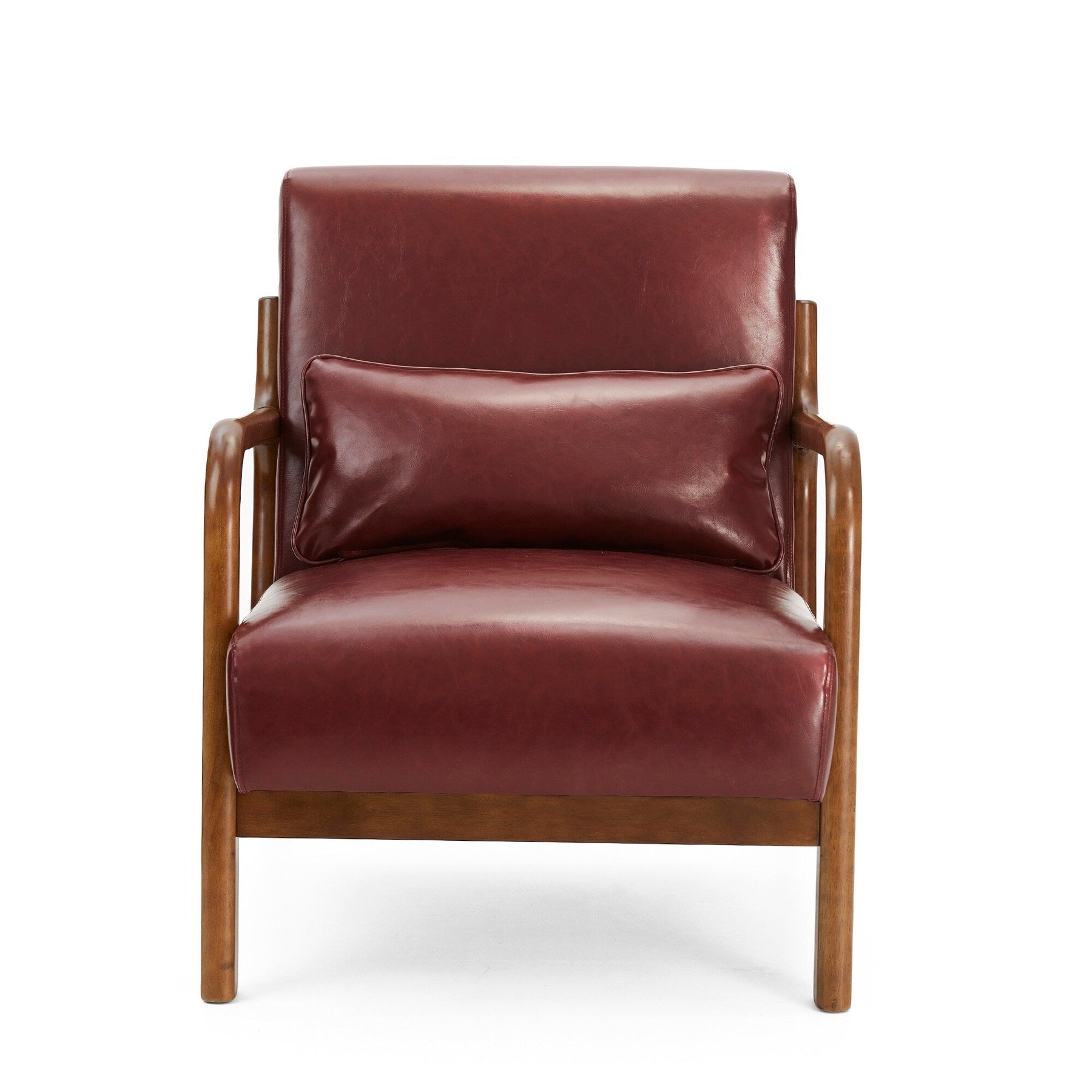 Add a touch of elegance and comfort to your home with the Mid-Century Modern PU Leather Accent Armchair. With a solid rubberwood frame and gorgeous walnut finish, this chair is built for long-lasting durability. The seat and back are upholstered in premium Leatherette leather with slight distressing, making it easy to clean, waterproof, and odor-free. This versatile accent chair is perfect for your living room, bedroom, reading area, or office.