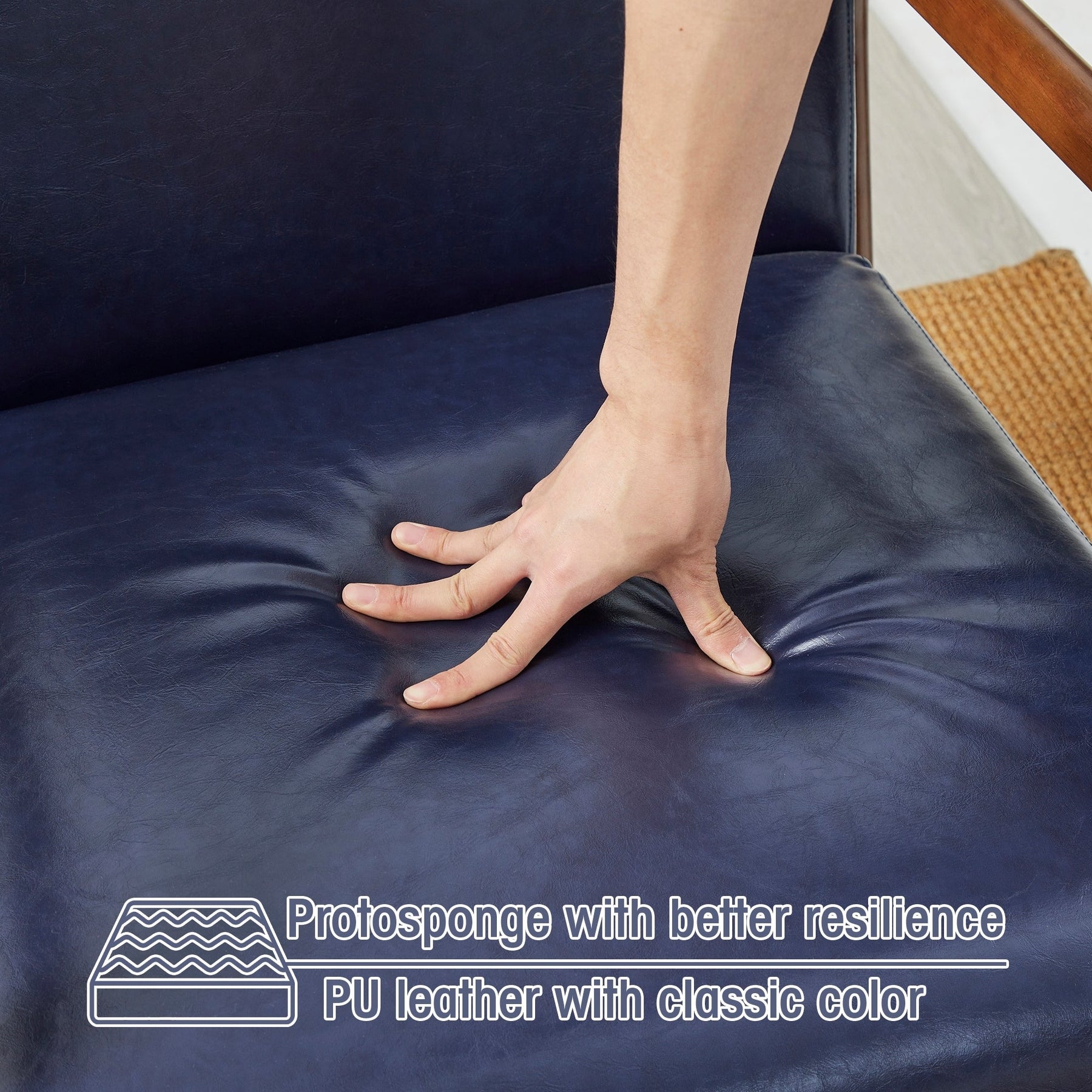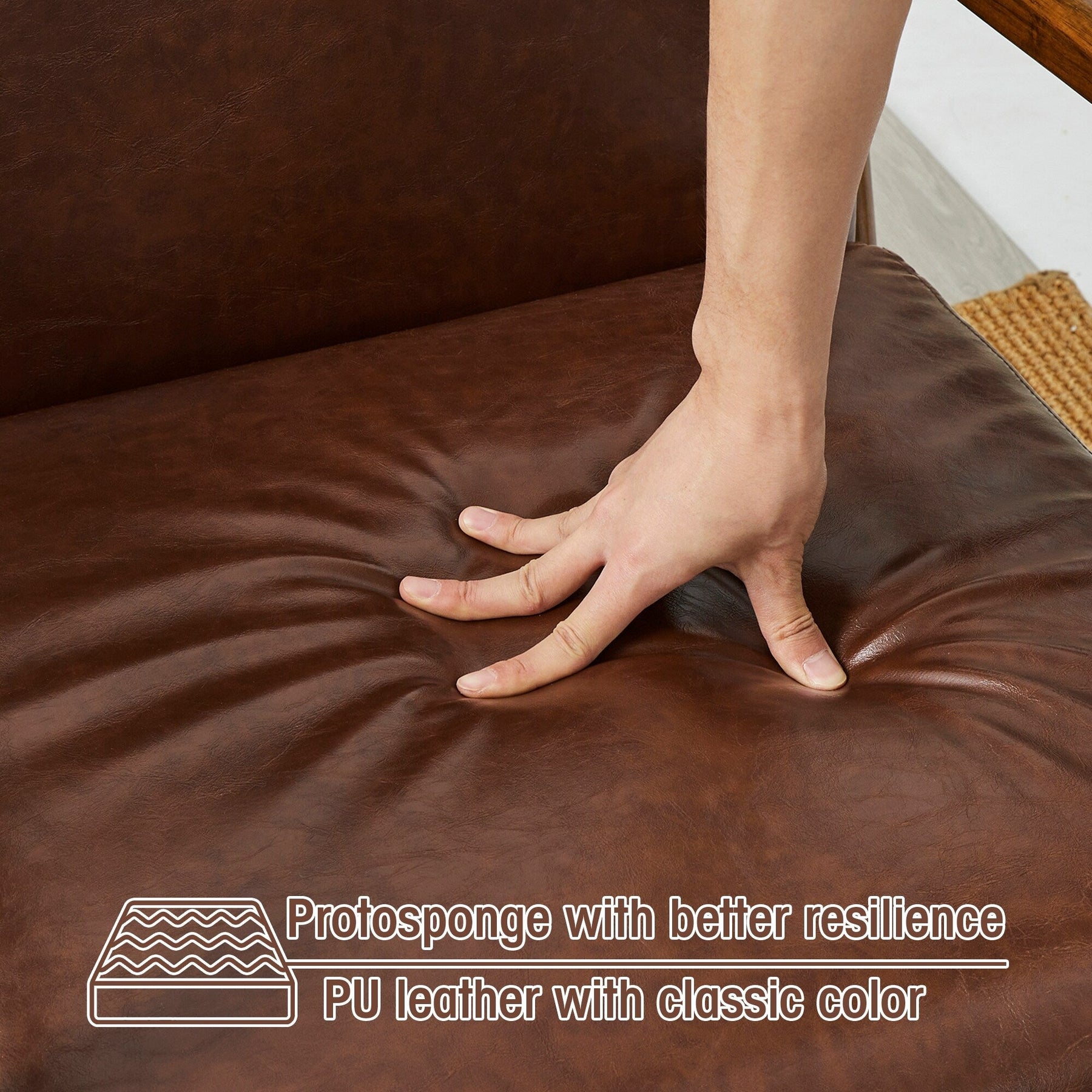 - Material: Rubberwood 25%, PU Leather 20%, and Foam 45%
