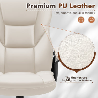 Work comfortably while sitting in this executive ergonomic computer chair. This chair has a cushioned back and upholstered seat that provides extra support. It features thick padding and soft texture. A 360-degree swivel, heavy-duty base and smooth-rolling casters make a superb stable structure.