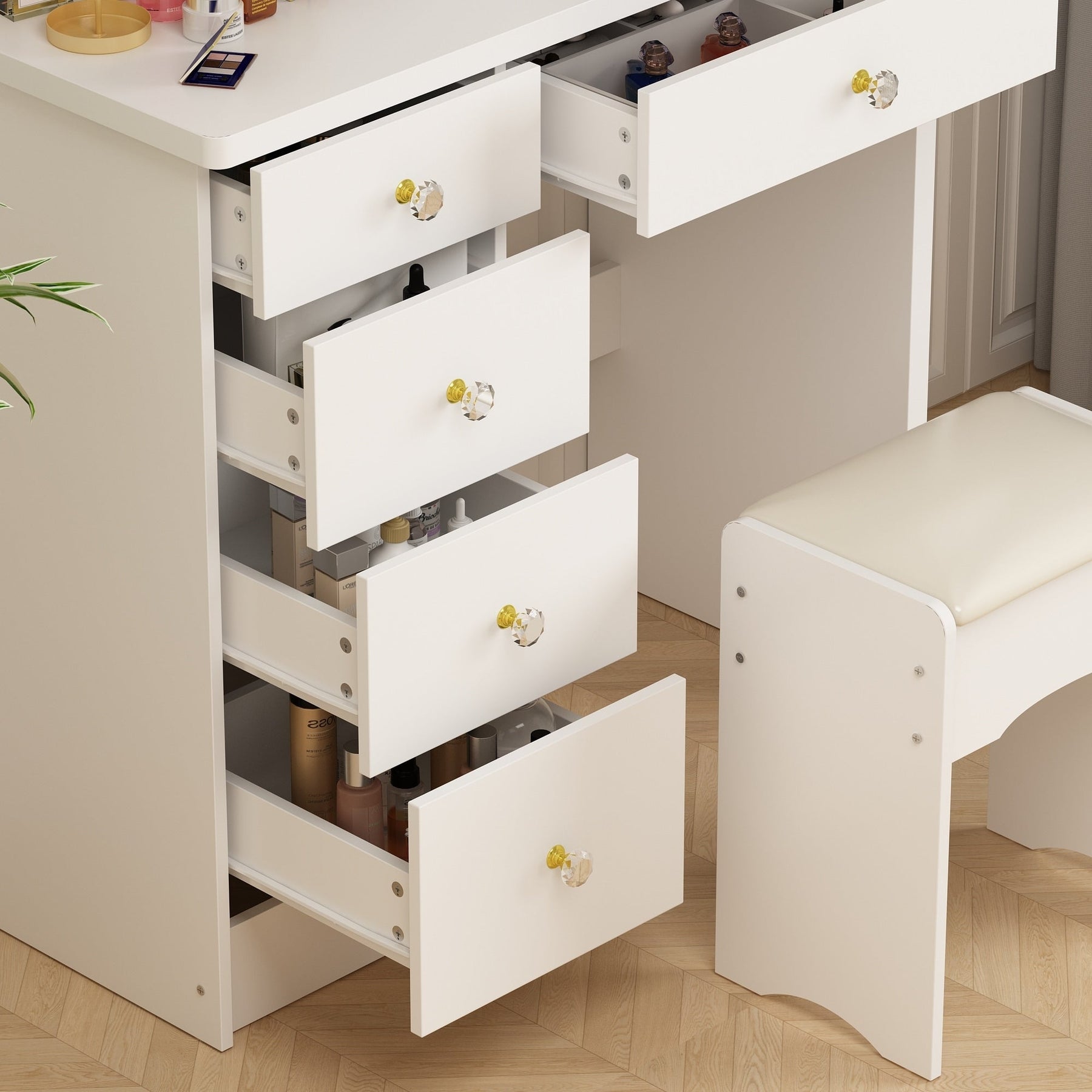 • 5 spacious drawers for ample storage of makeup, jewelry, and hair accessories