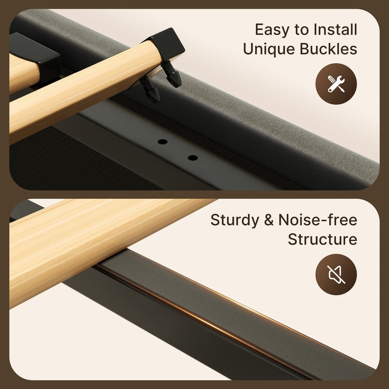 • Enhanced Comfort: The upholstered fabric on the bed frame and headboard adds comfort, making it a cozy spot to lean against while reading or watching TV.