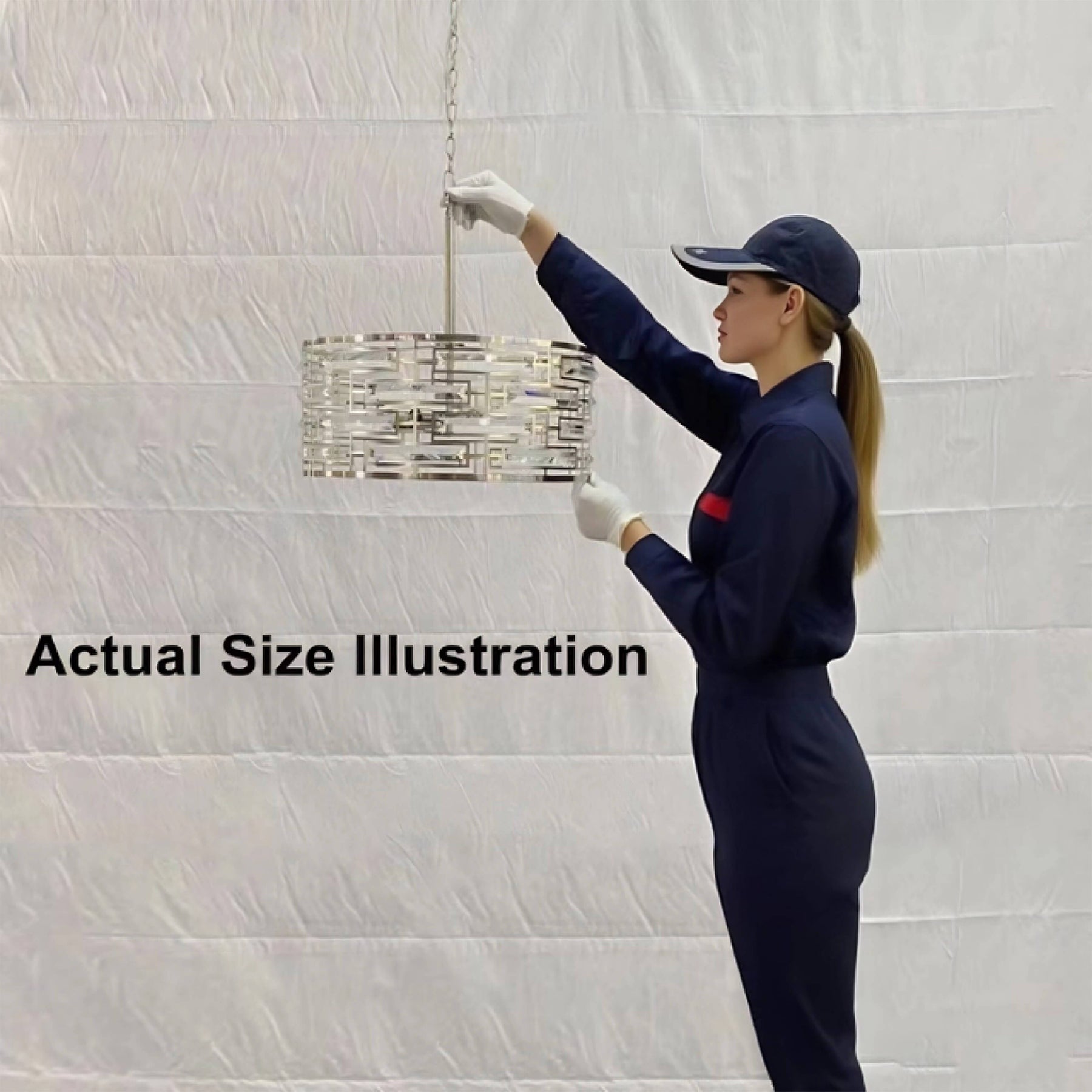 Title: Anita Drum Shade Chandelier with Clear Glass Prism