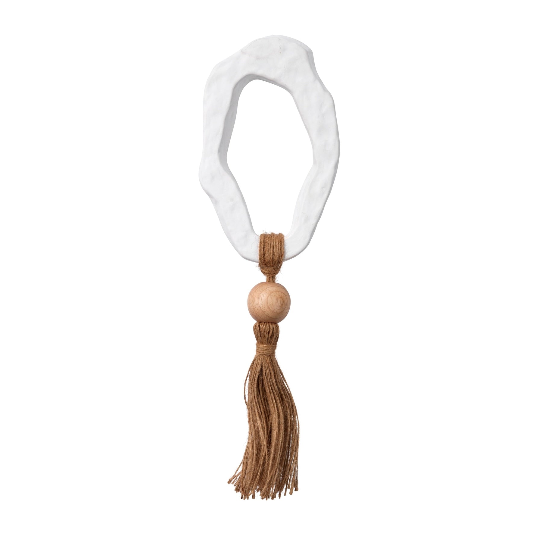 Inspired by eastern designs, this set of three decorative hangings create a striking focal poing on your wall. Hand-crafted of resin these organic free-form rings feature wooden beads and sisal rope. Hang in a decorative row or individually as here-and-there ornaments in any room in need of