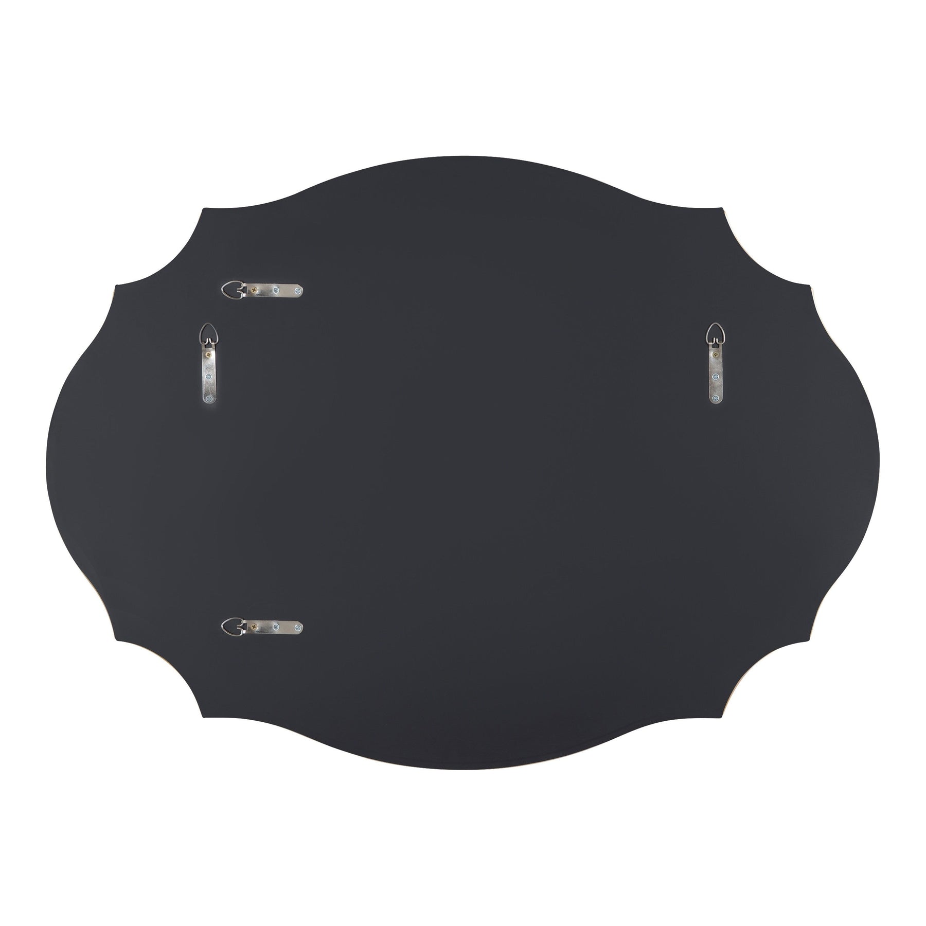 Elevate your home decor with the stunning Kate and Laurel Leanna Scalloped Oval Wall Mirror. This versatile piece can be hung both vertically and horizontally, making it perfect for any room as a captivating focal point. Its elongated oval shape is beautifully designed with a scalloped form that creates an eye-catching burst effect on your wall. This mirror is simply perfect as a bathroom mirror over your vanity, adding a touch of elegance to your daily routine.