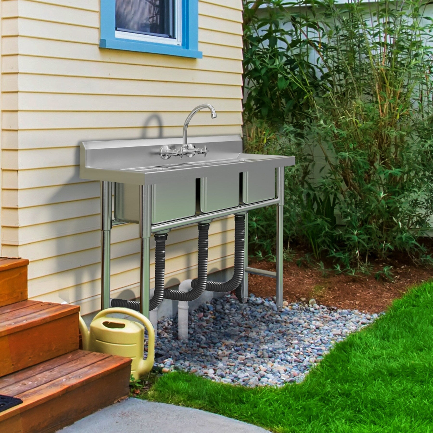 The freestanding utility sink is highly resistant to corrosion, oxidation, and deformation so it achieves long-lasting durability without rust or warping, no worry about leaks; Additionally, its smooth surface makes it effortless to clean, saving you valuable time and effort in your life. The overall size is 39'x18'x37' , Bowl size - 10.24' x 11.02' , 8.7' depth, making it ideal for cleaning dishes and even clothes, help maintain a bright, prevent clogging of the drain and clean operating environment;