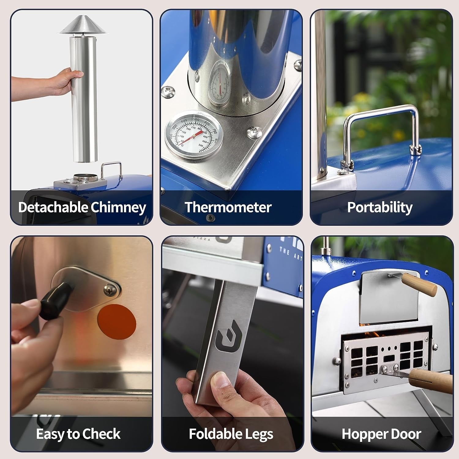 Our 16' wood pellet pizza oven is designed for exceptional versatility and convenience. Compatible with wood pellets, the outdoor pizza oven quickly reaches 752℉ in just 20-25 minutes, ideal for cooking a perfect pizza in 60 seconds. Its portable design features a handle and foldable legs for easy transport, complemented by a built-in thermometer for precise temperature control. With double walls and a stainless steel inner liner of the portable pizza oven, heat retention and cleaning are effortless. Beyond pizzas, it caters to diverse cooking needs.