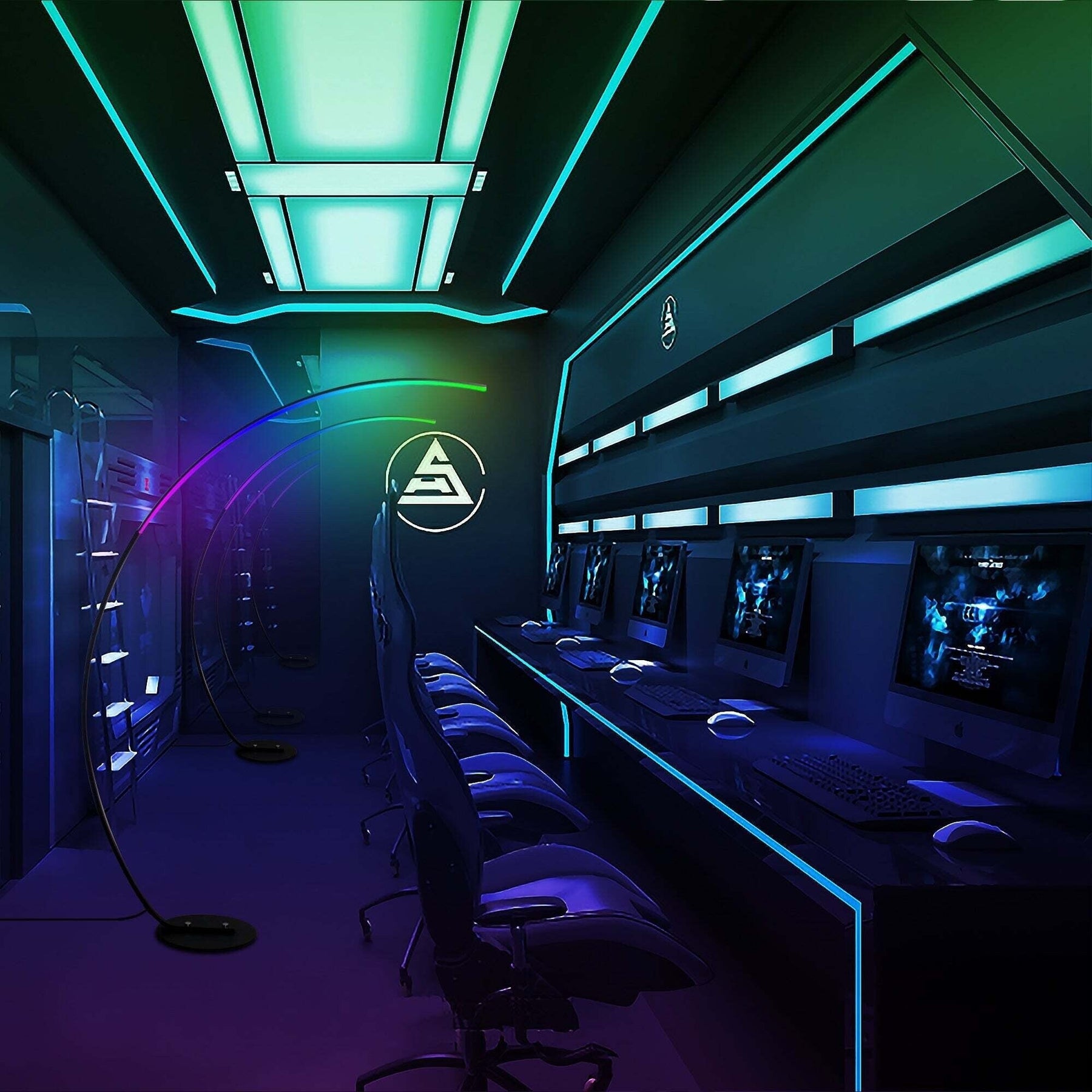 The 69' Arched RGBW Floor Lamp is a customer favorite and is known for its simple, stylish design and warm welcoming glow. It has a slender design, making it easy to position, and a steady base. It has an easy-to-use foot switch and a 98' cord, and provides 358+ dynamic lighting effects. It is suitable for open spaces, behind a sofa or personal couch. Assembly only requires a screwdriver.