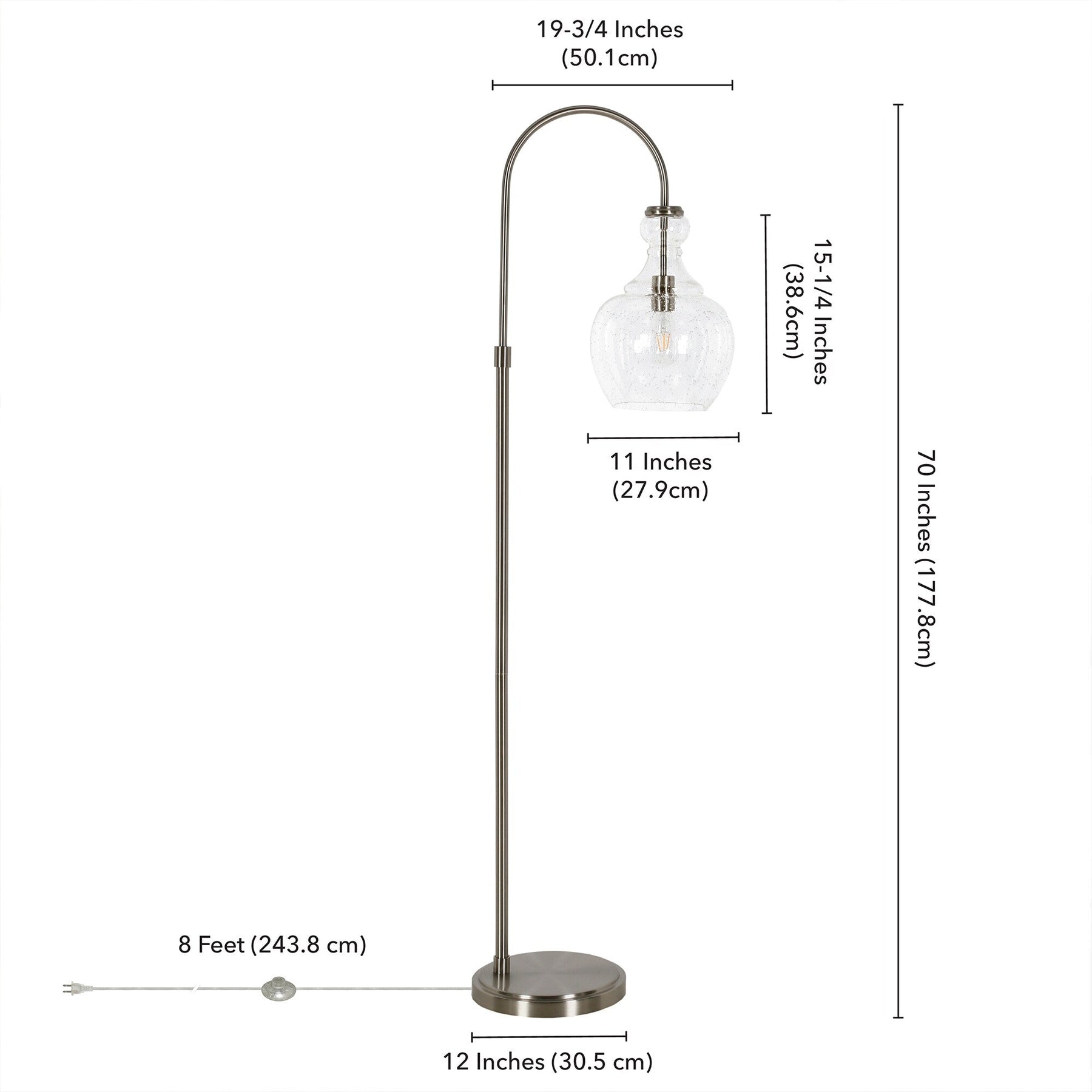 Elevate your reading nook, living room, or home office set-up with this sleek update on a mid-century farmhouse design. The perfect task light, this 70' table lamp counterbalances function and form in an appealing blend of curves and angles. Its arced shape allows for perfectly targeted lighting, while the neutral metallic finish and glass dome shade provide a cozy glow wherever you use it.