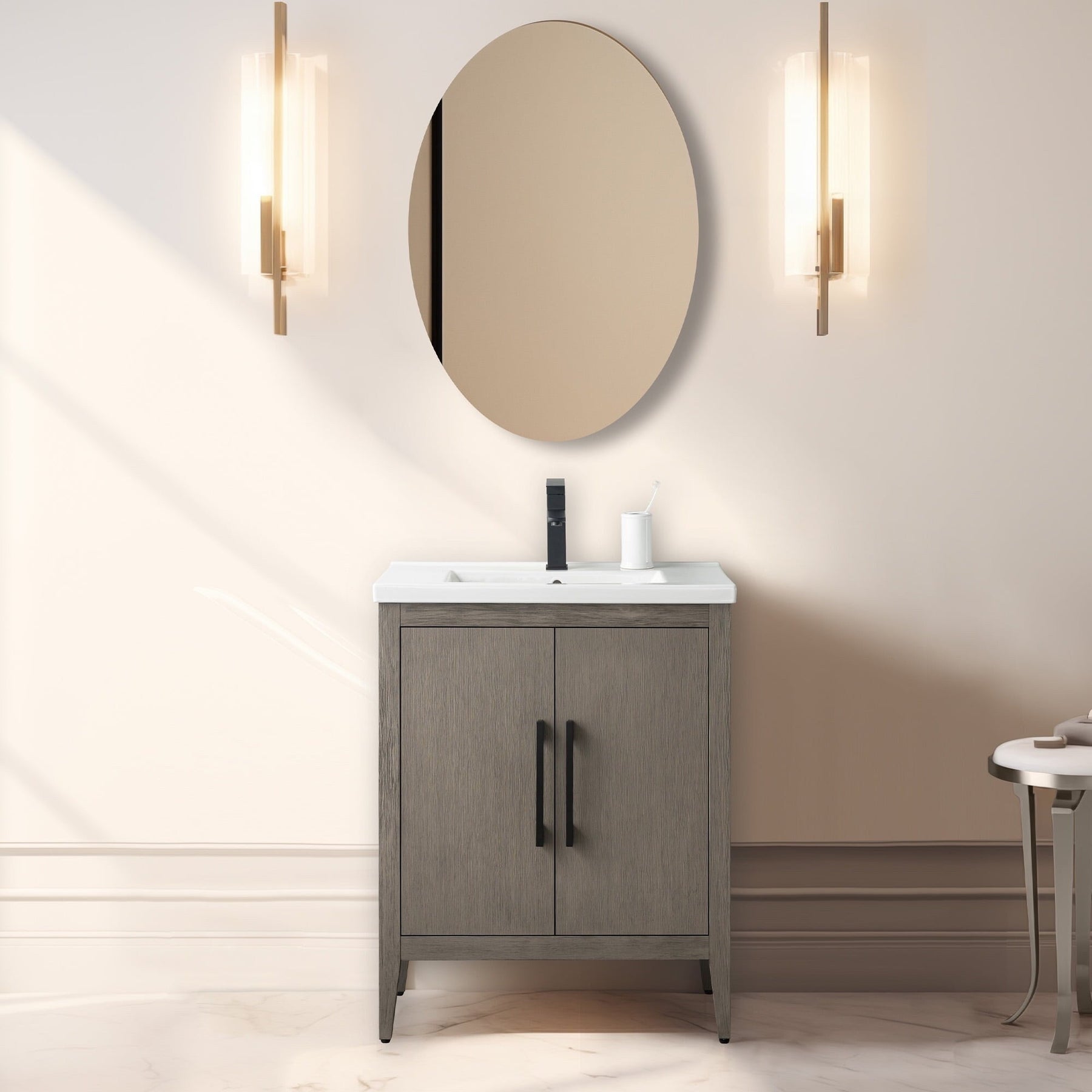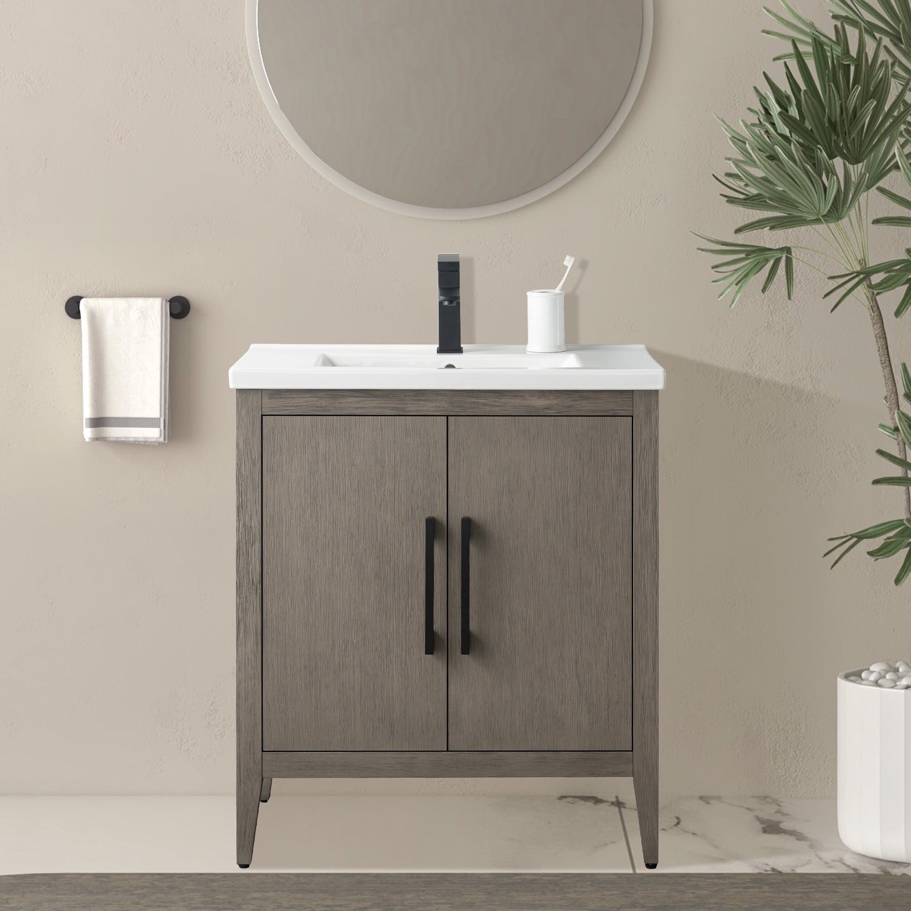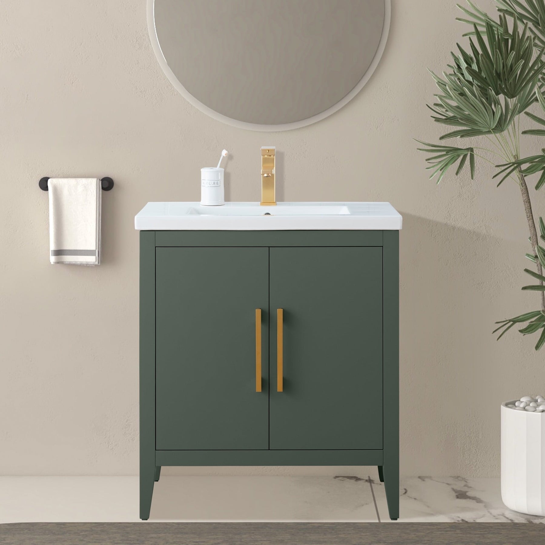 Vanity Art introducing the premium solid material bath vanity with sink. It is the perfect blend of functionality and style for your home. This essential piece offers generous storage space, featuring removable shelves to keep your belongings organized and easily accessible. Crafted with convenience in mind, our sink cabinet boasts a sleek ariston countertop that not only adds a touch of elegance but is also a breeze to clean. The regular-shaped sink complements the countertop, creating a seamless and eye-catching look for your bathroom. Built to last, our sink cabinet doors are equipped with premium-quality hinges, ensuring smooth and reliable operation. Versatility is key - our vanity bathroom sink cabinets aren't limited to the bathroom. With its stylish design and functional features, it's the perfect fit for a kitchen cabinet with a sink.