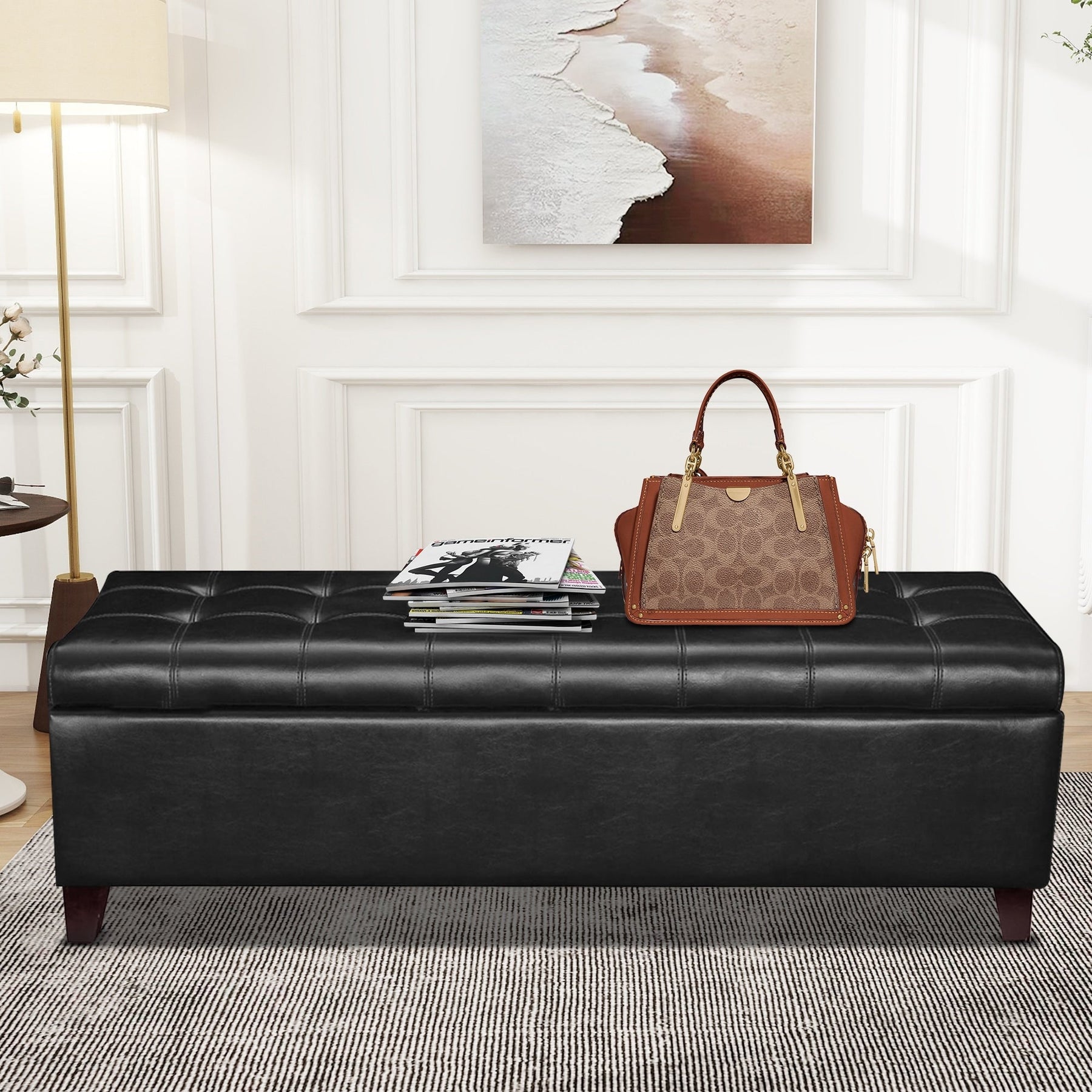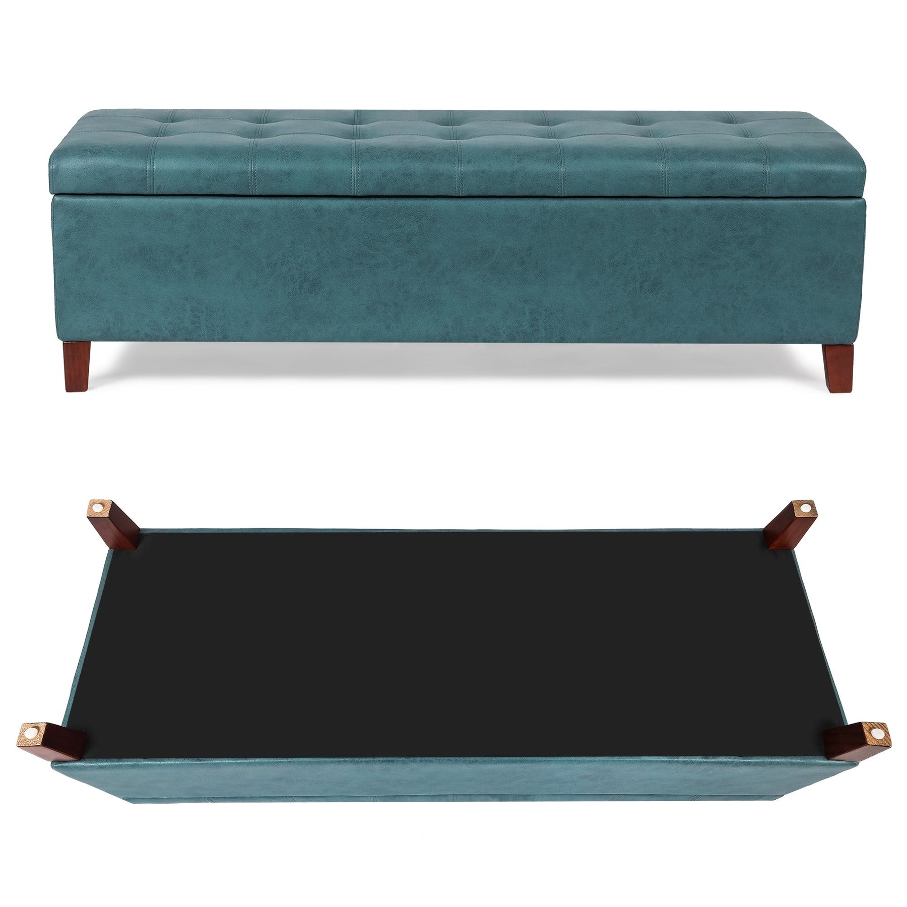 Add sophistication and storage to your space with this storage ottoman bench. This elegant piece, available in many colors, features button-tufted cushioning for comfortable seating and a large interior storage space perfect for blankets, books, or other household items. The raised design adds character to your bedroom or entryway, while the durable bonded leather ensures long-lasting quality.