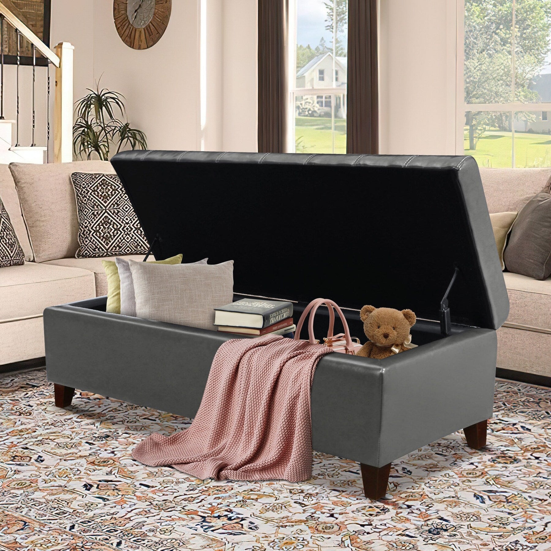 • Large interior storage space, you can store your blankets,pillows,cloths, books or kid's toys.