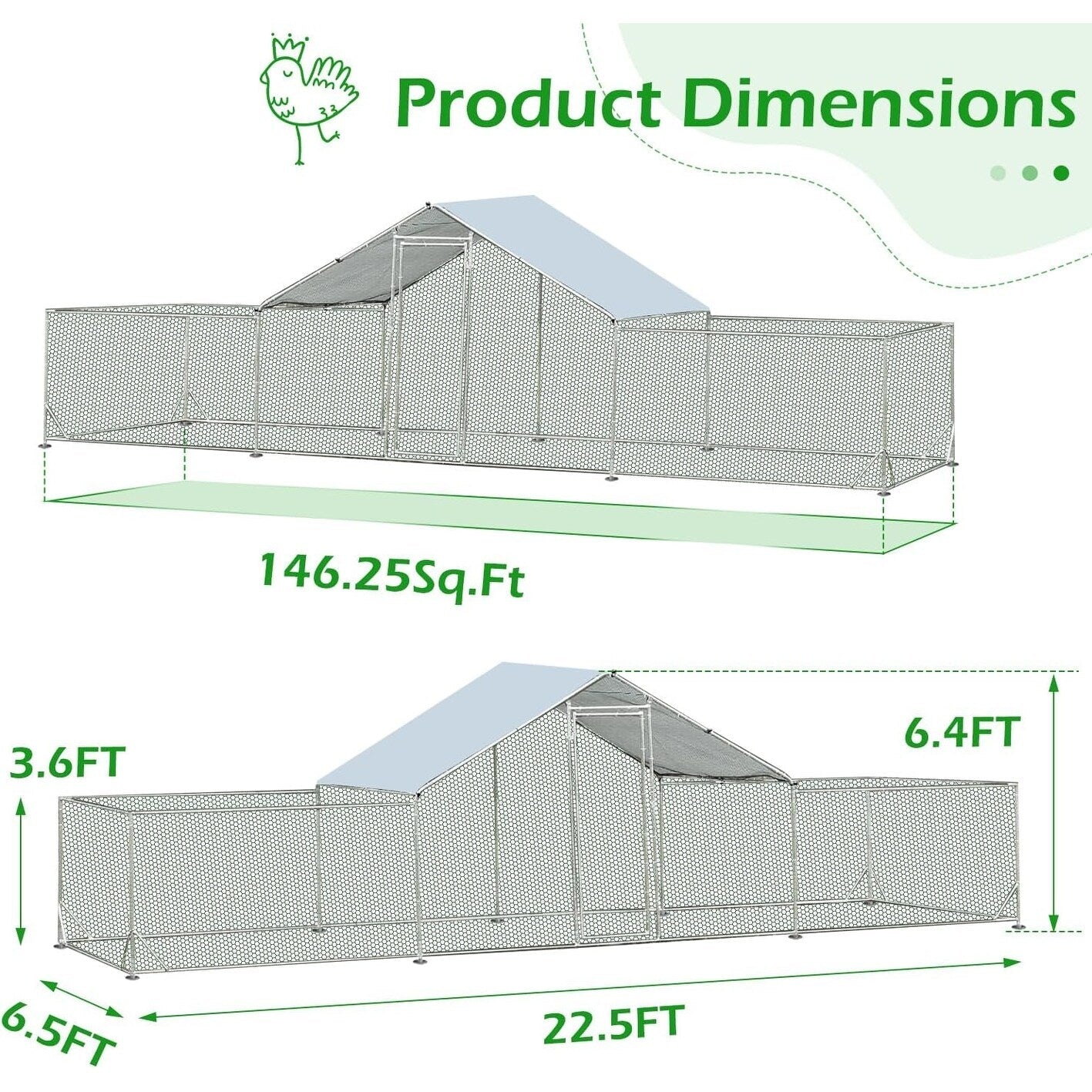 • 【Useful for A Variety of Animals】The metal chicken run is suitable for chickens, rabbits, ducks, and other small animals in both suburban and farm settings.