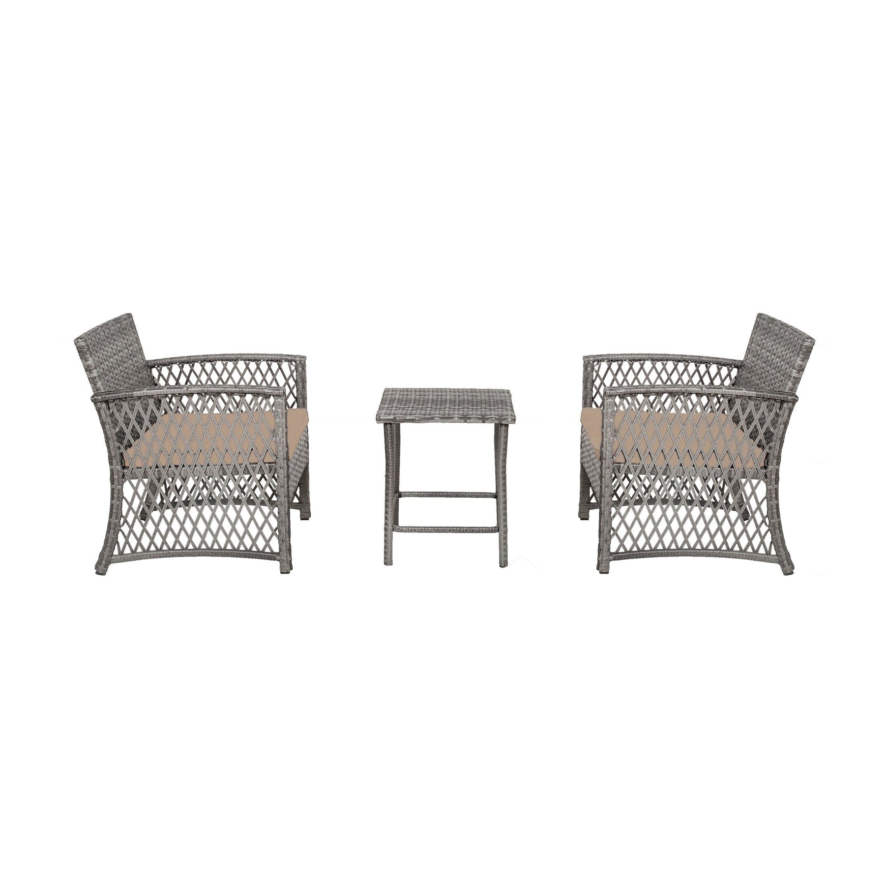 Create a cozy and stylish outdoor living space with this 3-piece wicker bistro patio set. The breathable wicker seating and matching table offer both comfort and style, while the durable iron frame provides reliable support. Perfect for relaxing with loved ones, this bistro set is a must-have addition to any patio.